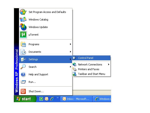 1.คลิก Start -> settings -> Control Panel