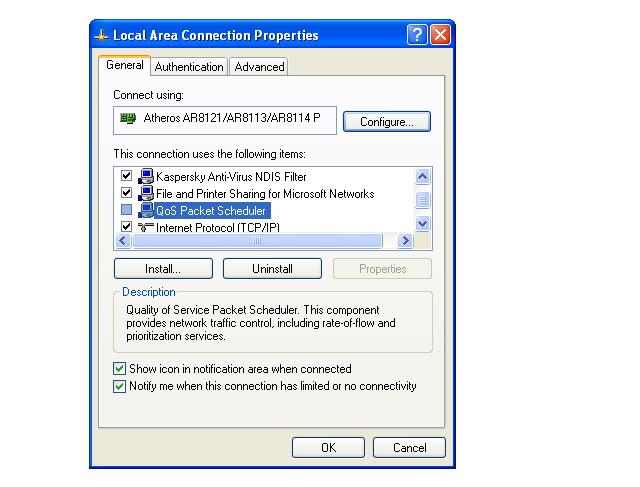 4. เอาเครื่องหมายถูกหน้า QOS Packet Scheduler ออก