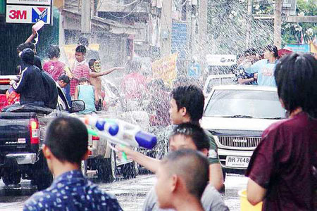 "คุณกร สงกรานต์ปีนี้คุณไม่ต้องขึ้นเวรใช่มั๊ยครับ งั้นเดี๋ยวผมพาคุณไปเล่นน้ำถนนข้าวเหนียวดีกว่า"