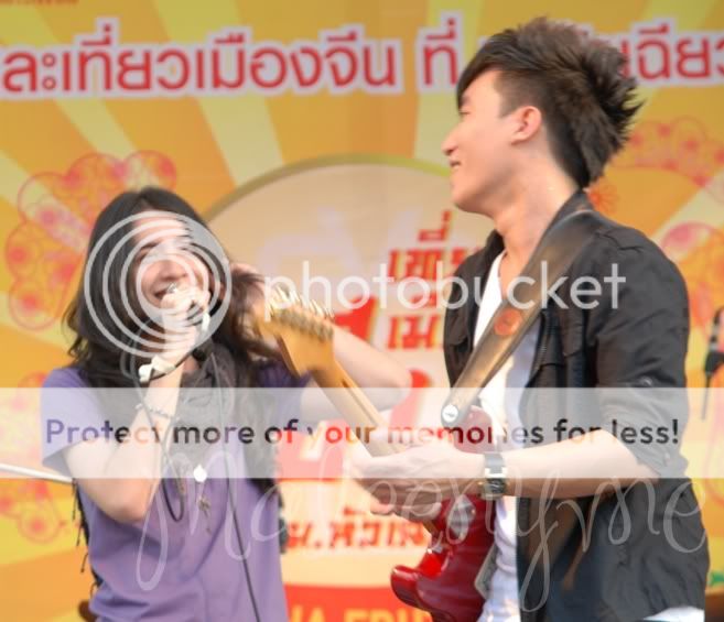 พี่ซินตอนแรกๆก็ยื่นมือให้จับ แต่โดนดึงค่ะ หลังๆก็เปลี่ยนเป็นแตะๆ พี่่นัทก็เหมือนกัน ตอนแรกลงไปนั่งเล่น แล้วโดนดึงทั้งกีตาร์ กางเกง มือ ฯลฯ