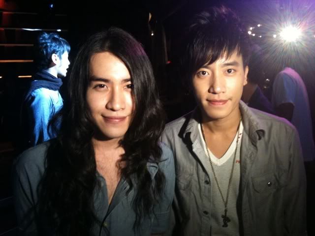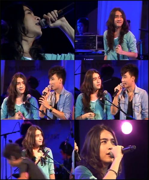ก็คุยกันนิดหน่อย เห็นผมพี่ซินสวยเลยตะโกนถามไปว่า พี่ซินใช้แชมพูยี่ห้ออะไร แต่พี่ซินวกเข้าขายของต่อ เพื่อนเราก็ฮาไป ไม่ได้ว่าอะไรเข้าใจว่ามันถ่ายทอดสดเลยบอกไม่ได้ พี่ซินก็แนะนำว่าพี่นัทใจหล่อ เราก็เลยแหกปากอีกรอบว่า"หน้าก็หล่อ" พี่นัทหันมายิ้มให้และก็"ขอบคุณครับ" แบบว่าตอนนั้นละลายกองไปกะพื้นเรียบร้อยแล้ว 55 แล้วก็ร้องเพลงต่อถ้าจำไม่ผิดก็น่าจะเพลงรักแท้ ลอง แล้วก็ปิดท้ายด้วยเบา เบา พอเบาจบก็ชวนเพื่อนฝ่าคนดูออกไปรอขอลายเซ็นต์ ออกไปรอตรงรถตู้ของศลป.ซึ่งอยู่ข้างๆเต็นท์ที่พักของศลป. รอไปซักพักก็ยังไม่ออกมา แฟนคลับก็เริ่มตะโกนเรียก พี่สต๊าฟเดินออกมาบอกว่าแป๊ปนึง เดี๋ยวออกมา เราก็รอกันไปประมาณ 15นาที พี่นัทก็เดินออกมาก่อนก็รีบขอลายเซ็นต์ ถ่ายรูปไปตามระเบียบ แล้วพี่ซินก็เดินออกมา แต่เดินไปหางแฟนคลับอีกทางนึง เราก็ไม่เป็นไรเพราะเรายืนอยู่ตรงทางออกข้างๆรถตู้ของพี่เค้าพอดี รอสักพักพี่ซินก็ยังไม่มาก็เลยถามว่า ทางออกมีทางเดียวใช่มั้ย เพราะอีกด้านกั้นรั้วไว้ แต่การ์ดตอบมาว่า ทางนู้นก็ออกได้ ถ้ายกรั้วออก-*- เราก็รอต่อไปอย่างมีหวังสักพักแฟนคลับทางนั้นเบาบางลง ก็คิดว่าคงจะออกมาแล้ว ก็เตรียมปากกาไว้ให้เซ็นต์ซีดี แต่พอพี่ซินออกมาการ์ดก็ไปรุมพี่ซินคนเดียวเพราะพี่นัทขึ้นรถไปแล้ว ก็นึกว่าจะให้มาเว็นต์ให้แฟนคลับแต่ไม่ใช่เลย พอใกล้ถึงแฟรคลับพี่ซินเอื้อมมือจะเซ็ฯต์ให้แต่ถูกพี่สต๊าฟลากตัวไป พี่ซินเหมือนจะยื้อตัวเองไว้แล้วแฟนคลับก็ยื้อพี่ซินไว้ สต๊าฟเลยกระชากพี่ซินขึ้นรถไปเลย เราก็สงสารพี่ซินเลยไมม่ยื้อไว้เพราะสต๊าฟกระชากแรงมาก กลัวพี่ซินเจ็บ พอเข้ารถไปนั้งข้างพี่นัทก็บ้ายบายแฟนคลับแล้วก็กลับไป เราก็แอบเสียดายเล็กๆที่ไม่ได้ลายเซ็นต์พี่ซิน แต่แค่นี้ก็คุ้มแล้วค่ะ^^