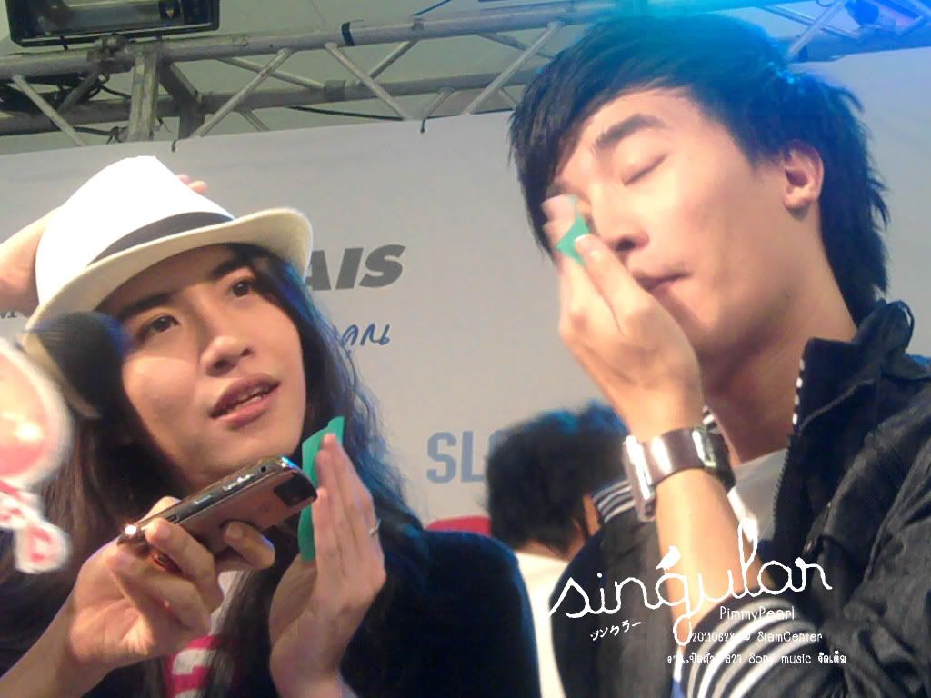 พอแสตมป์เดินลงจากเวทีก็ทักทายFC ที่อยู่รายรอบ เมื่อเงยหน้าขึ้นมาก็ส่งยิ้มแฉ่งไปที่ซิน (ซินคนเดียวไม่เหลียวมองนัทสักนิด)  พร้อมทำตัวลีบราวกับสามีที่ทำอะไรผิดกลัวโดนภรรยาด่า พร้อมกับยิ้มหวานมุ่งรี่เข้าไปหาซิน ทำทีเป็นทรงตัวไม่อยู่นัยว่าคนเยอะ เลยแอบเนียนขอจับตัวคนสวยสักเล็กน้อย