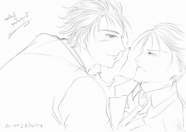 จะเห็นว่าบุพเพนั้นโหดร้ายกับตานพจริงๆ ฮ่าๆ คุณไพฑูรย์รูปนี้แก้อยู่หลายรอบมาก เพราะร่างอันแรกหล่อและเมะกว่านี้เยอะค่ะ แบบว่า คุณไพฑูรย์คะ เป็นเคะได้จริงๆ หรือคะเนี่ย หน้าเริ่มเหมือนมาเฟียเข้าไปทุกที รูปคุณไพแอบลำเอียงลงสีค่ะ แบบว่าเกิดอยากเล่นโปรแกรมเพนต์ขึ้นมา เล่นไปเล่นมากดเซฟ มันก็...เซฟออกมาแบบนี้เลยค่ะ...ขี้เกียจสแกนใหม่ล่ะ เอาแบบสีไปแล้วกันนะคะ^^"