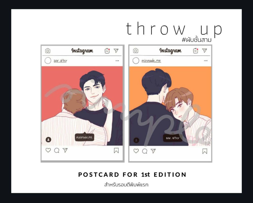 “ อ้าวสัดพี่ กูคิดว่ามึงจะลงมาพร้อมพี่เมด ” น้องชายผมเงยหน้าขึ้นถาม พลางเช็ดแก้วเหล้าในมือไม่มีหยุดในตอนที่เห็นกัน ผมเองก็ไม่ได้ตอบอะไรกับคำทักทายนั่น แต่กลับหย่อนตัวลงนั่งที่เก้าอี้ข้างเพื่อนสนิทที่กำลังเขียนอะไรสักอย่างในกระดาษ มันคงเป็นแผนงานของผับที่มันกำลังร่างไว้คร่าวๆ สำหรับงานฝ่ายการตลาดในเดือนถัดไปของ throw up